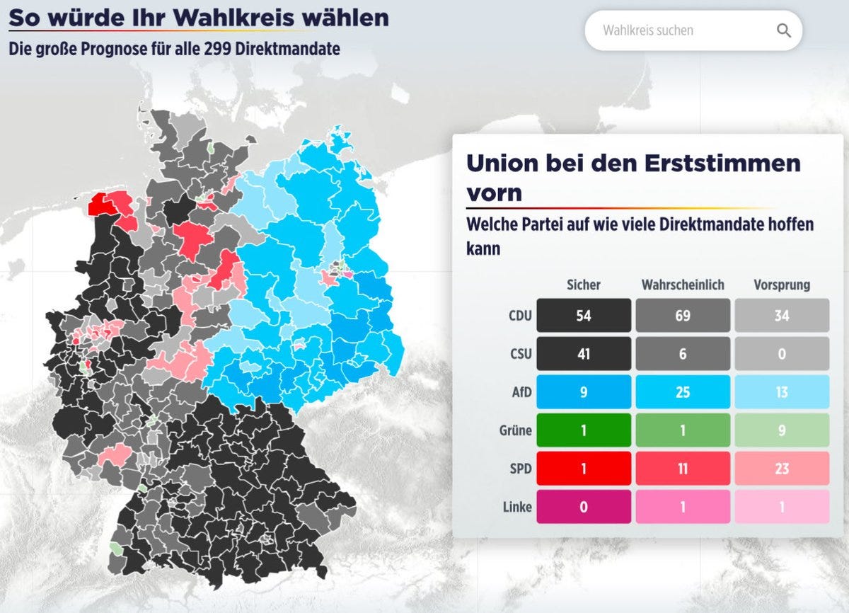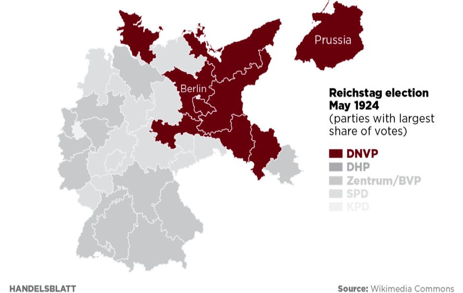 For example, the same happened in 1924, before WWII and the partition of Germany. Just like the AfD today, the DNVP (nationalists/authoritarian conservatives) won second place nationally thanks to votes from the East. 🙀